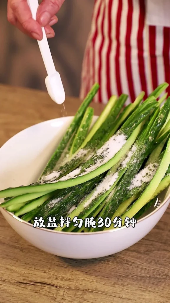 Add salt and mix well. Let sit for 30 minutes to draw out water.